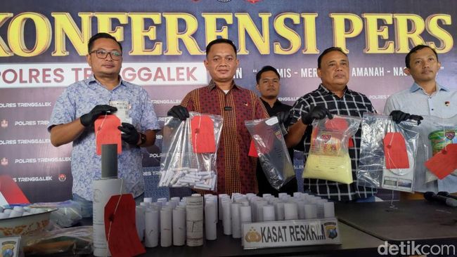 Kasatreskrim Polres Trenggalek AKP Eko Widiantoro, mengatakan tersangka AD (23) ditangkap di rumahnya di Desa Sugihan, Kecamatan Kampak, Trenggalek. Selain tesangka, polisi juga menyita barang bukti lima kilogram bahan peledak berupa belerang, bubuk Kalium Klorat (KCLO3) dan bubuk arang.