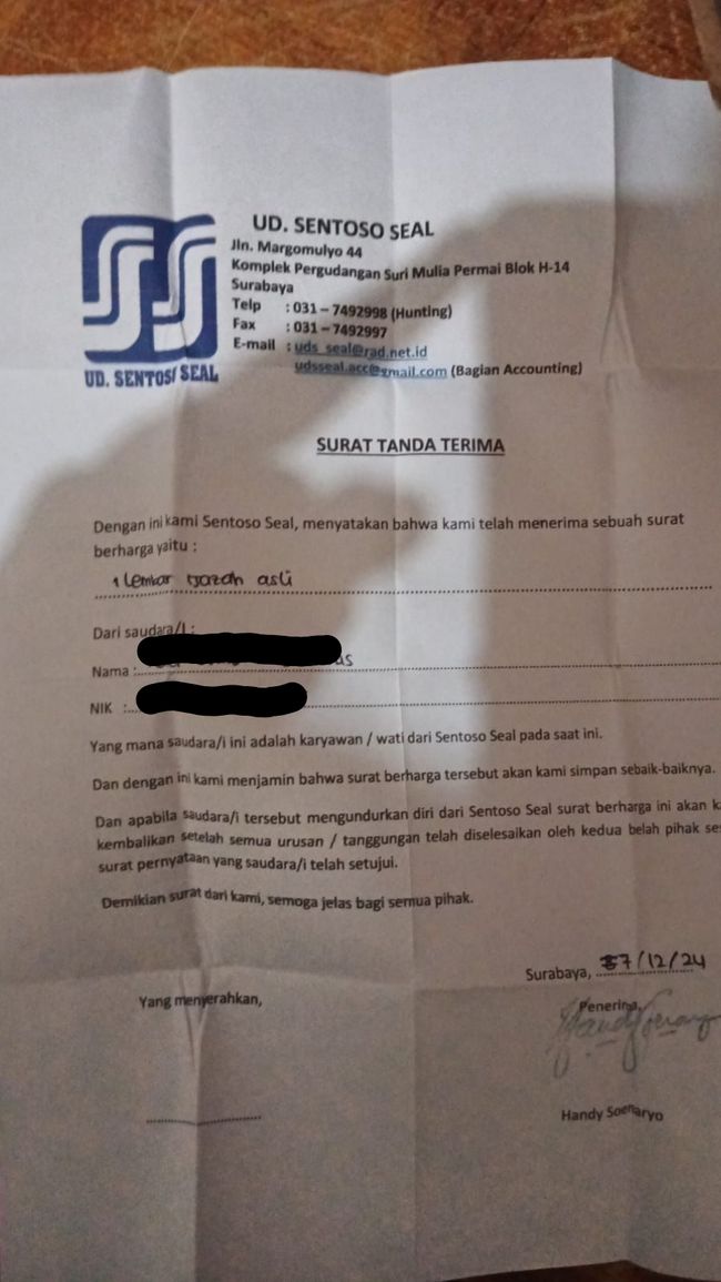 Sementara itu, hasil pencarian di Google menunjukkan bahwa UD Sentoso Seal memiliki dua alamat resmi, satu di Jalan Raya Dupak, Gundih, Bubutan Blok A-14 nomor 17, dan satu lagi di Pergudangan Jalan Margomulyo Industri II nomor 28 blok D.