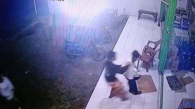Dalam rekaman CCTV berdurasi 01.33 menit yang beredar, terlihat korban keluar dari toko. Dua orang juga tampak keluar dari toko tersebut.