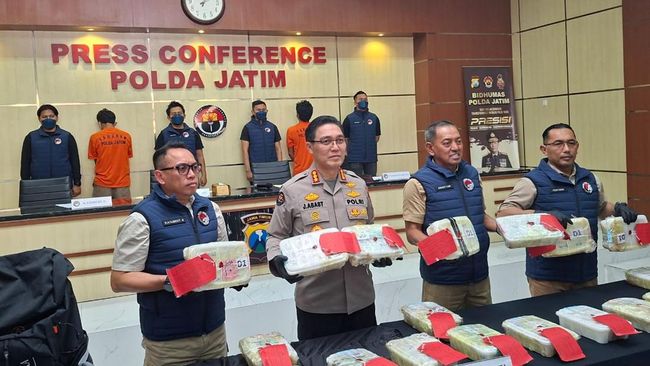 Dua kurir sabu 22 kg jaringan Timur Tengah diringkus Ditresnarkoba Polda Jatim. Kedua tersangka yakni Wira Yaksa (36) dan Riki Eka Prastawan (38) yang ditangkap pada Rabu (24/4).