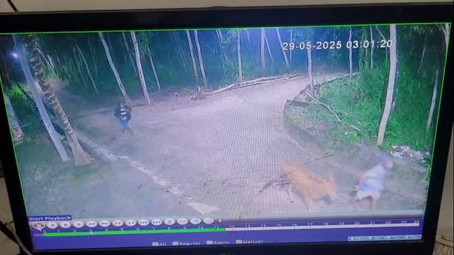 Dari rekaman CCTV, terlihat satu pelaku berperan menggiring sapi, sementara temannya yang mengenakan jaket mendorong sapi dari belakang.
