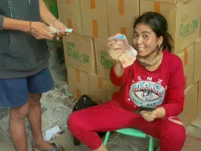 Sang suami langsung menarik sang kurir sembari mengatakan "kembalikan, kembalikan (uangnya)."