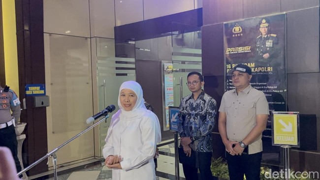 Gubernur Jatim Khofifah Indar Parawansa telah memberikan keterangan sebagai saksi kasus dugaan korupsi Dana Hibah Pokmas APBD Pemprov Jatim kepada penyidik KPK di Polda Jatim. Dia sebutkan bahwa pertanyaan dari penyidik sebenarnya tidak banyak.