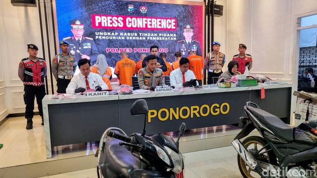 Kapolres Ponorogo AKBP Andin Wisnu Sudibyo mengatakan, tersangka ditangkap atas kasus pencurian dengan pemberatan sebagaimana diatur dalam Pasal 363 KUHP. Dalam aksi tersebut, pelaku berhasil membawa kabur satu unit sepeda motor milik korban bernama Jemingan, warga Kecamatan Balong.