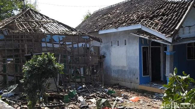 Rumah ayah Afandi yang bersebelahan juga rusak parah. Tiang teras rumah bercat biru muda itu patah. Genting di bagian depan juga banyak yang pecah.