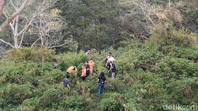 Selanjutnya, polisi dibantu para relawan dan anjing pelacak menyisir semak-semak sekitar penemuan telapak kaki kiri. Lokasi tepatnya di sisi kiri jalur Pacet-Cangar sekitar 1 Km di atas tikungan Gotekan