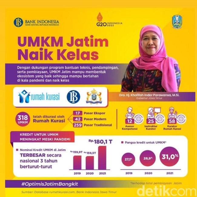 "Alhamdulillah, melalui program Rumah Kurasi, yang merupakan kolaborasi antara Bank Indonesia,l dengan Dinas KUMKM dan Perindag Jawa Timur perlahan tapi pasti UMKM Jatim terus naik kelas," tambahnya.