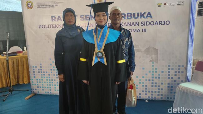 Prestasi membanggakan diraih putri warga korban lumpur Lapindo, Ponadi (54) dan Nasipah (50). Bagaimana tidak, putrinya Reni Maulana berhasil menyabet lulusan terbaik Poltek Kelautan dan Perikanan (KP) Sidoarjo.