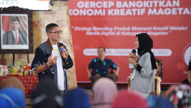 Menteri Pariwisata dan Ekonomi Kreatif Sandiaga Uno menghadiri kegiatan pelatihan bagi para pelaku ekonomi kreatif di Pendopo Kabupaten Magetan, Jawa Timur.