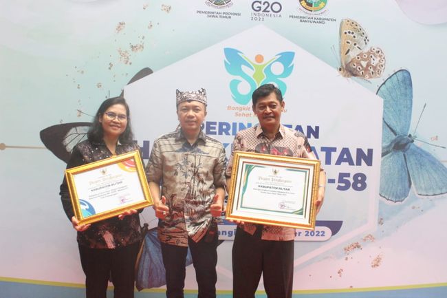 Pemerintah Kabupaten (Pemkab) Blitar memborong penghargaan di puncak Peringatan Hari Kesehatan Nasional (HKN) Ke-58 Tahun 2022 Provinsi Jawa Timur. Total ada 5 penghargaan yang diraih pada acara di Kabupaten Banyuwangi, Selasa (15/11) ini.