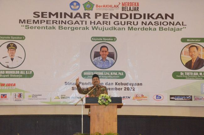 Kepala Dinas Pendidikan dan Kebudayaan Kabupaten Sidoarjo, Dr. Tirto Adi, M. Pd., menilai seminar pendidikan ini sangat penting untuk meningkatkan kompetensi guru. Topik seminar 'Serempak Bergerak Wujudkan Merdeka Belajar' berkaitan dengan kebijakan pemerintah pusat dan peringatan Hari Guru Nasional.