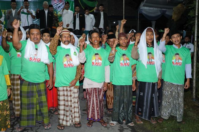 Sukarelawan pendukung Ganjar Pranowo yang tergabung dalam Santrine Abah Ganjar (SAG) menggelar istigasah, shalawat, dan doa bersama di Tempursari, Kelurahan Sambirejo, Kecamatan Geger, Kabupaten Madiun, Jawa Timur. SAG Kabupaten Madiun mendambakan Indonesia yang makin aman dan tentram.