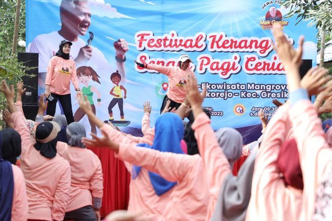 "Kami gelar Senam Pagi Ceria dan Festival Kerang bagi warga Desa Sukorejo dan sekitarnya. Kebetulan lokasinya berada di Ekowisata Mangrove Kali Lamong," ujarnya dalam keterangan tertulis, Minggu (26/2/2023).