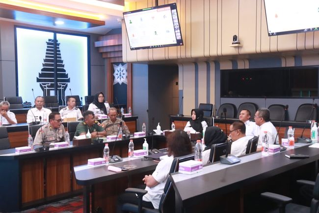 Bupati Ikfina mengikuti roadshow daring Menko PMK dari Smart Room Satya Bina Karya (SBK) kantor Bupati Mojokerto. Sekda Teguh Gunarko, para camat, polisi dan TNI terlihat hadir di lokasi yang sama.