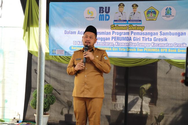 Peresmian program pemasangan sambungan baru pelanggan Perumda Giri Tirta disambut bahagia warga di Kecamatan Gresik. Pemasangan sambungan pelanggan baru PDAM di Kelurahan Kemuteran, Kelurahan Kroman dan Kelurahan Lumpur Kecamatan Gresik ini, diresmikan langsung oleh Bupati Gresik Fandi Akhmad Yani.