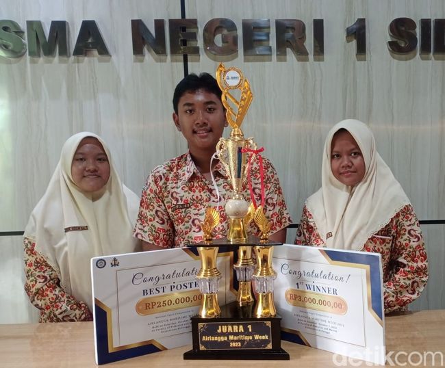 Menciptakan batu batu pemecah gelombang, 3 siswa SMAN 1 Sidoarjo meraih juara 1 dalam ajang Airlangga Maritime Week (AMW). Acara setiap tahun itu digelar Fakultas Perikanan dan Kelautan. Dimulai bulan Juli 2023 dan final 7 - 8 Oktober 2023.