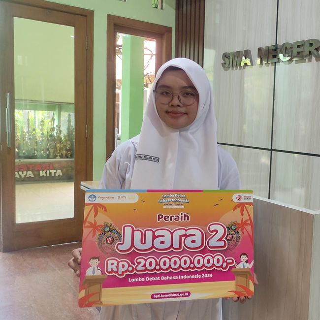 Makayla Azzahra Putri kelas XI SMAN 1 Sidoarjo ini berhasil meraih prestasi membanggakan sekolah dan orang tuanya. Dia meraih ranner up Lomba Debat Bahasa Indonesia (LDBI) tingkat nasional.