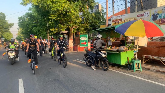 Kapolres Mojokerto Kota AKBP Herdiawan Arifianto bersama anak buahnya memilih gowes untuk memantau kamtibmas. Selain itu, gowes ini juga untuk mendekatkan Polri kepada masyarakat.