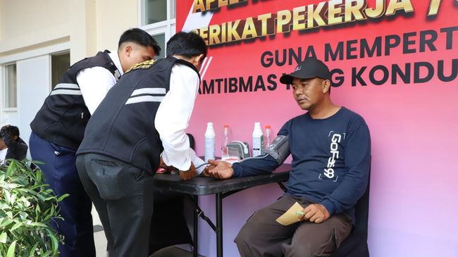 "Kami berikan layanan kesehatan gratis bagi teman-teman buruh, sebagai wujud komitmen kepedulian Polri terhadap kesehatan dan kesejahteraan para buruh sebagai bagian dari pilar ekonomi," ujar Kombes Nanang.
