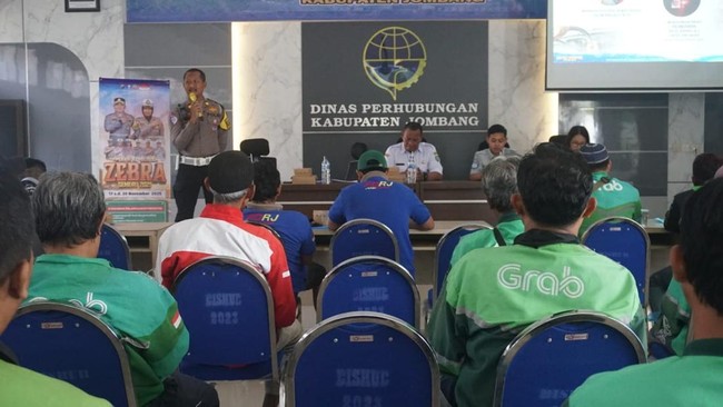 Puluhan driver ojek online (ojol) mendapat edukasi keselamatan berkendara dari Satlantas Polres Jombang. Edukasi ini untuk mencegah terjadinya kecelakaan lalu lintas.