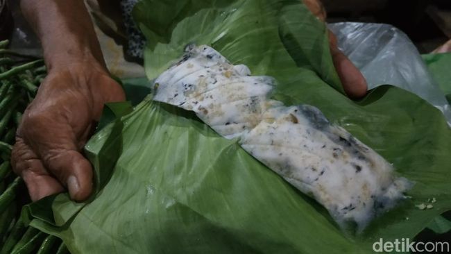 "Sak menten niki biasane setengah hari sampun telas (Segini ini biasanya setengah hari sudah habis)," ucap Katemi sembari menunjuk tumpukan tempe berbungkus daun keladi.