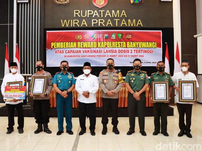 "Ini merupakan stimulus bagi wilayah yang getol melakukan vaksinasi COVID-19. Kami berikan reward ke Kecamatan yang meraih capaian vaksinasi tertinggi di Banyuwangi," ujar Kapolresta Nasrun Pasaribu kepada detikJatim.