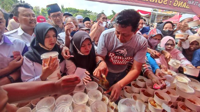 5.236 Porsi nasi rawon dibagikan ke masyarakat Probolinggo di 'Festival Kuliner Rawon'. Kegiatan yang digelar di Alun-alun Kota Kraksaan memperingati HUT Bhayangkara ke-76, ini juga meraih rekor Museum Rekor Dunia Indonesia (MURI), dengan jumlah nasi rawon terbanyak.