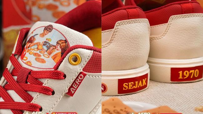 Sepatu dengan merek Aerostreet ini berkolaborasi dengan biskuit Khong Guan. Khong Guan sendiri dikenal sebagai biskuit legendaris di Indonesia. Biskuit ikonik ini selalu menjadi favorit suguhan lebaran.