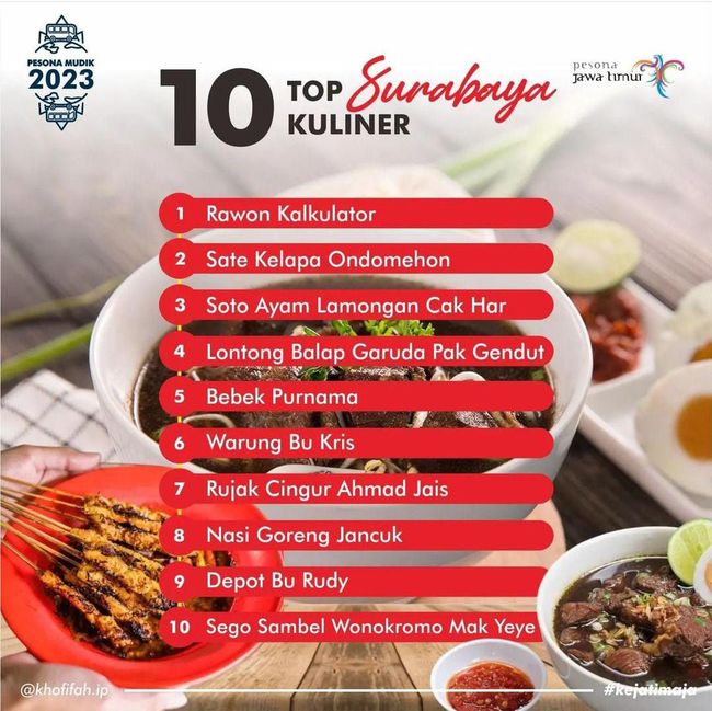 "Bahan dasar dan nama boleh sama, tapi soal rasa sudah pasti berbeda karena proses pengolahannya bercampur dengan budaya, cita rasa lokal, dan kreativitas pembuat. Berikut rekomendasi kuliner wuuenaaak di Jawa Timur Part 1. Yuk gaassss cicipi semuanya mumpung lagi libur lebaran dan pulang kampung," imbuhnya.