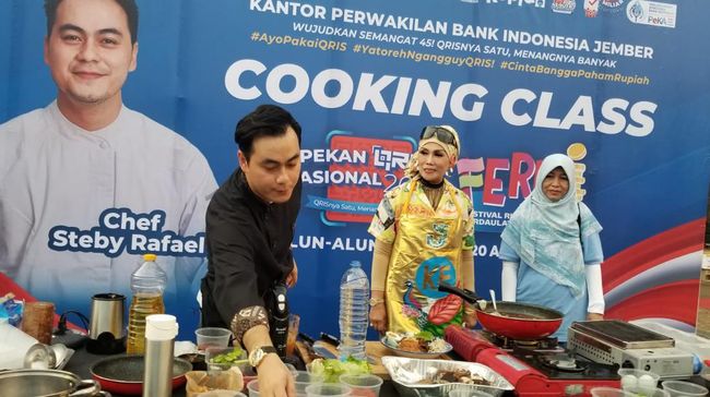 Puluhan ibu-ibu mengikuti cooking class bersama chef Steby Rafael di Alun-alun Jember. Mereka belajar memasak Rawon Pecel, makanan yang menjadi ciri khas kabupaten Jember.