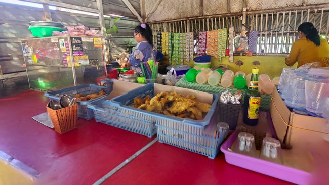 Bagi pelanggan yang ingin makan di warung, disediakan satu meja besar, dua kursi panjang, dan satu kursi kayu dari anyaman bambu sebagai tempat makan. Warung Pak Edi sudah pernah berpindah tempat tiga hingga empat kali.