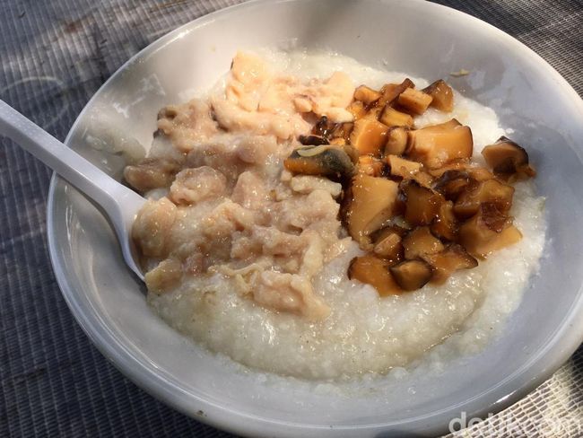 detikJatim berkesempatan memesan menu utama kedai ini. Saat dihidangkan, tampak campuran beberapa topping yang unik memberikan sentuhan khusus yang memperkaya cita rasa. Rasa gurih dan sedikit manis dari jamur shitake memberikan sentuhan berbeda saat pertama kali mencoba bubur dari kedai ini.