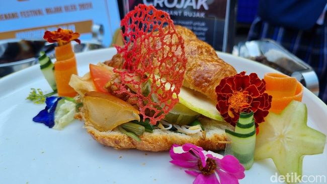 "Itu kami padukan karena kami tahu tujuannya rujak uleg ini gimana caranya bisa diangkat menjadi menu internasional. Kami punya ide membuat paduan croissant dengan rujak uleg tapi tidak menghilangkan menu original rujak ulegnya. Ada bumbu petis," ujar GM Leedon Hotel and Suites Surabaya Tatok Hariyanto.