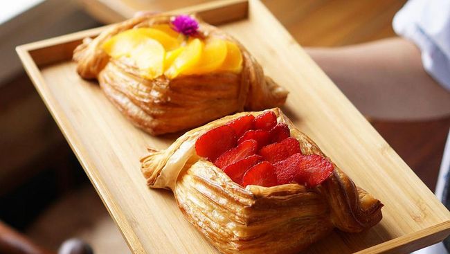 Menu: croissant grandma favourite, croissant a la bratwurst, strawberry danish retawu, kouign amann XL, pain au chocolat, grill chicken with jalapeno, artisan coffee caramel, ice chocolate valrhona, dan masih banyak lainnya