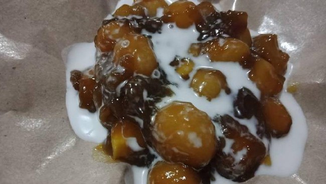- Campur tepung ketan, air kapur, dan air secukupnya, hingga bisa dipulung seperti klepon.