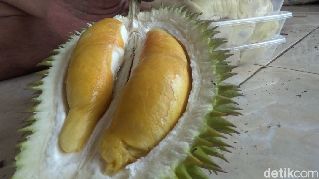 "Untuk durian oranye ini rasanya manis, legit serta dagingnya tebal. Kalau harganya masih terjangkau," ujar salah satu penikmat durian, Jecki.