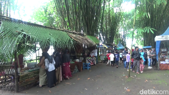 Di bawah rindangnya tanaman bambu, pengunjung berburu jajanan jadul yang kini mulai langka ditemui di perkotaan.