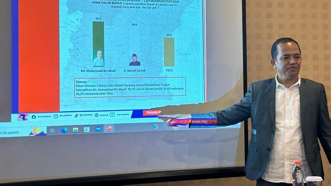"Hasilnya elektabilitas bapaslon Gus Mamak-Abdullah Hidayat unggul atas Kaji Idi-Ra Mahfud," kata Direktur ARCI Baihaki Sirajt saat paparan di Surabaya, Selasa (20/8/2024).