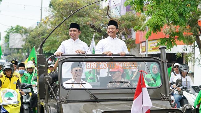 Dari kawasan masjid agung mereka berangkat ke KPU Kota Pasuruan di Jalan Panglima Sudirman naik jip. Ratusan pendukungnya mengiringi dengan konvoi motor.