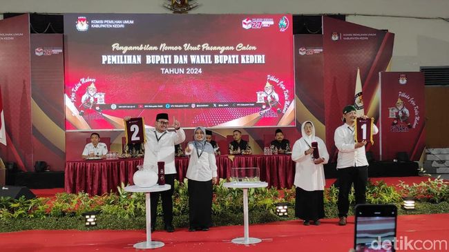 KPU Kabupaten Kediri menggelar pengundian nomor urut untuk pasangan Calon Bupati dan Wakil Bupati Kediri dalam Pilkada 2024. Kegiatan ini berlangsung di Gedung Bagawanta Bhari Kediri, pada Senin (23/8/2024) malam.