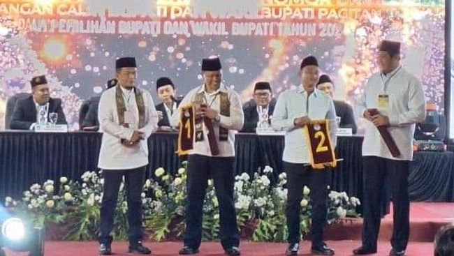 Geliat jelang gelaran Pemilihan Bupati dan Wakil Bupati Pacitan tahun 2024 makin terasa. Hal itu terlihat kala proses Pengundian dan Penetapan Nomor Urut Pasangan Calon yang dihelat di gedung Gasibu Swadaya, Jalan Ahmad Yani, Senin (23/9/2024) malam.