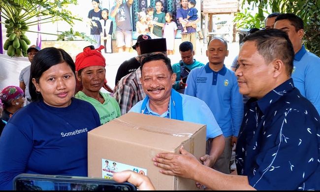 Selain air bersih, ia juga membagikan paket sembako terhadap warga. Sembako tersebut berisi 10 kg beras, 2 kg gula pasir, 2 liter minyak goreng, serta 5 bungkus mie instan.