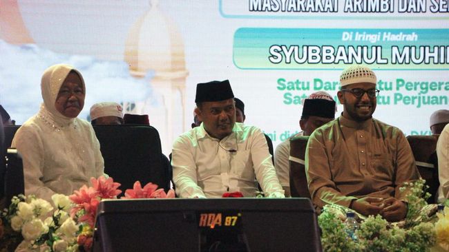Calon Gubernur Jatim nomor urut 3 Tri Rismaharini turut menyemarakkan acara Peringatan Maulid Nabi Muhammad SAW yang digelar Aliansi Madura Indonesia (AMI). Acara ini digelar di Jalan Pegirian, Surabaya, Sabtu (28/9/2024) malam.