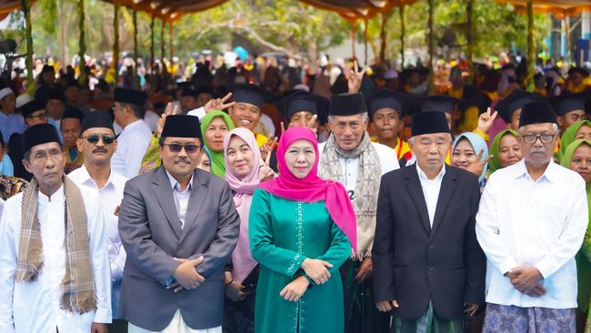 "Semangat terus untuk para santri, terus belajar maksimal raih pendidikan dan cita-cita setinggi mungkin," ujar Khofifah.