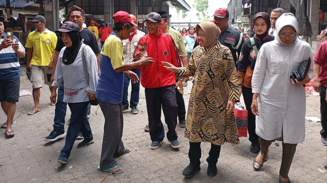 "Saya senang sekali bisa berada di sini dan melihat langsung semangat para pedagang," ungkap perempuan yang pernah menjabat wali kota Surabaya 2 periode.