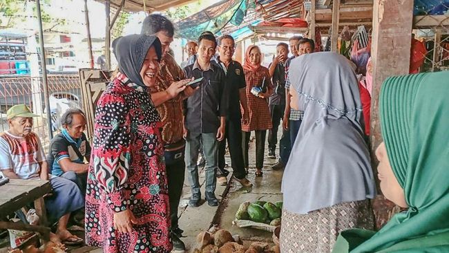 Sambil menyusuri lorong-lorong pasar, Risma memberikan semangat kepada para pedagang untuk tidak menyerah, seraya membahas pentingnya inovasi dan transformasi digital sebagai solusi untuk meningkatkan daya saing pasar tradisional.