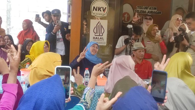 Calon Gubernur Jawa Timur Khofifah Indar Parawansa mengunjungi sentra UMKM di Sidoarjo. Cagub petahana itu mengunjungi Kampung Bebek yang memproduksi telur asin di Kecamatan Candi, dan Kampung Kerupuk di Kecamatan Jabon Sidoarjo.