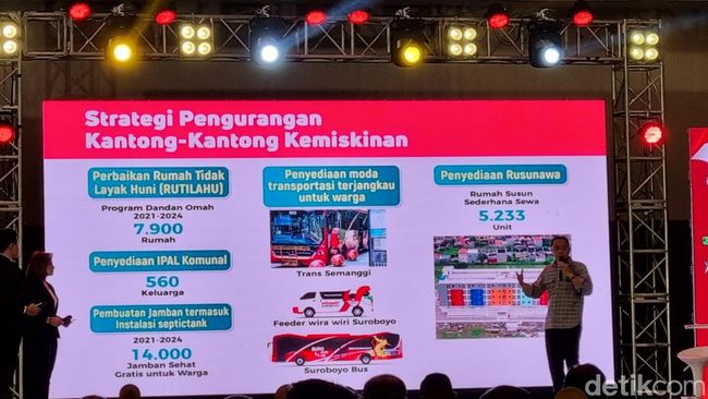 Menjawab pertanyaan itu, Eri Cahyadi mengatakan saat dirinya menjabat bersama Armuji kemiskinan di Surabaya masih 5,3%. Dia mengklaim hari ini kemiskinan di Surabaya menjadi 3,96%.