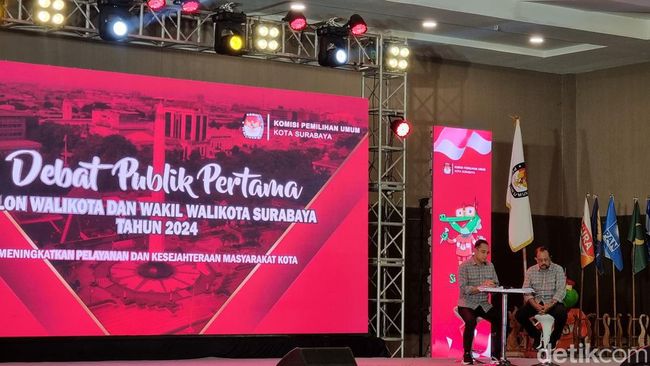 KPU belum menentukan jadwal debat kedua di Pilwali Surabaya 2024. Pilwali Surabaya kali ini hanya ada paslon tunggal Eri Cahyadi dan Armuji.