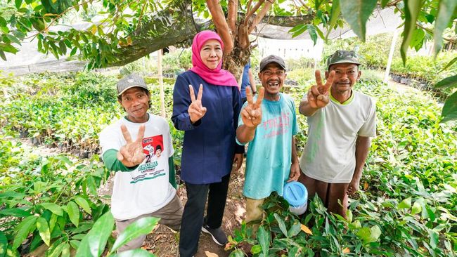 Calon Gubernur Jawa Timur Nomor Urut 2 Khofifah Indar Parawansa menyambangi kebun pembibitan buah di Desa Juwet, Kecamatan Ngrogot, Kabupaten Nganjuk.